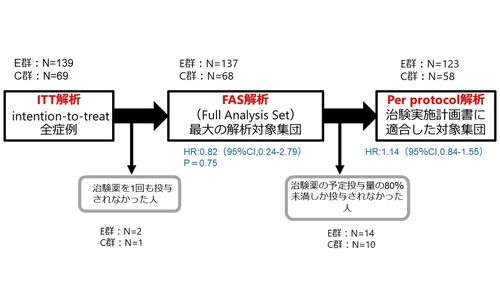 Gunst JD,et al.EClinicalMedicine. 2021 Apr 22:100849. PMID:33903855 【論文のPECO】 P:covid-19に感染して入院している人 E:カモスタット200mg/日 N=137 C:プラセボ N=68 O:臨床的改善までの時間で生きて退院するor7点満点の評価でベースラインから2…